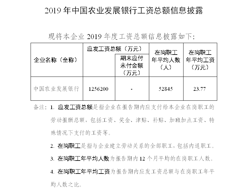 2019年中國(guó)農(nóng)業(yè)發(fā)展銀行工資總額信息披露