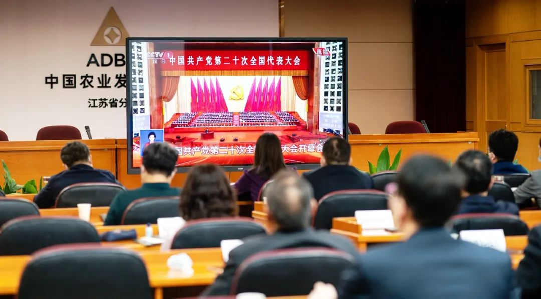 江蘇省分行黨委高度重視黨的二十大精神學(xué)習(xí)宣傳貫徹工作,結(jié)合疫情防控,專題研究并下發(fā)通知,對收聽收看組織工作做出明確部署安排。10月16日上午10時(shí),黨的二十大在京勝利開幕,省行黨委班子各處室負(fù)責(zé)人在省行機(jī)關(guān)集中收聽收看,各市縣行領(lǐng)導(dǎo)班子及部分黨員在當(dāng)?shù)匦屑惺湛矗渌麊T工也通過電視、網(wǎng)絡(luò)等方式自覺收聽收看。大家一致表示,要全面貫徹習(xí)近平新時(shí)代中國特色社會(huì)主義思想,凝心聚力、攻堅(jiān)克難,踔厲奮發(fā)、勇毅前行,以昂揚(yáng)的斗志和充沛的干勁投入服務(wù)“三農(nóng)”的事業(yè)中。