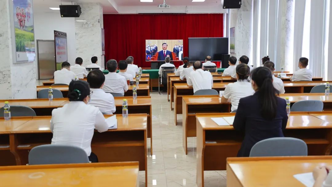 吉林省分行組織省分行機(jī)關(guān)干部和54個(gè)分支機(jī)構(gòu)黨員領(lǐng)導(dǎo)干部共400余人在本單位集中收聽收看黨的二十大開幕會(huì),其他員工在家通過手機(jī)、電腦、電視等多種方式收聽收看開幕會(huì)。全轄干部員工認(rèn)真聆聽習(xí)近平總書記代表第十九屆中央委員會(huì)所作的報(bào)告,倍受鼓舞,倍感自豪。大家紛紛表示,要以黨的二十大精神為指引,在服務(wù)國家重大戰(zhàn)略和“三農(nóng)”事業(yè)發(fā)展的新征程上,踔厲奮發(fā)、勇毅前行,攻堅(jiān)克難、接續(xù)奮斗,努力開創(chuàng)農(nóng)發(fā)行高質(zhì)量發(fā)展新局面,為全面建設(shè)社會(huì)主義現(xiàn)代化國家貢獻(xiàn)力量。