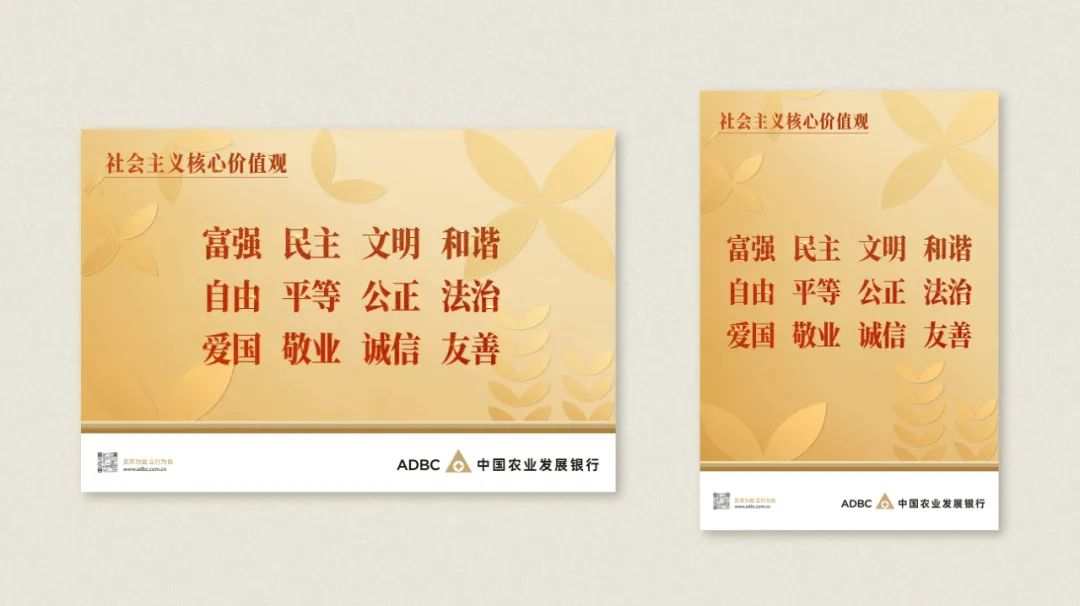 此次發(fā)布的海報(bào)是規(guī)范農(nóng)發(fā)行文化理念宣貫的有效手段,是展示現(xiàn)代化農(nóng)業(yè)政策性銀行品牌形象的重要途徑,是實(shí)施農(nóng)發(fā)行文化鑄魂工程的關(guān)鍵舉措。海報(bào)包括四部分內(nèi)容:社會(huì)主義核心價(jià)值觀、中國(guó)特色金融文化、農(nóng)發(fā)行核心文化理念和農(nóng)發(fā)行4個(gè)子文化理念。11款海報(bào),每款包含橫豎2版,共計(jì)22張。