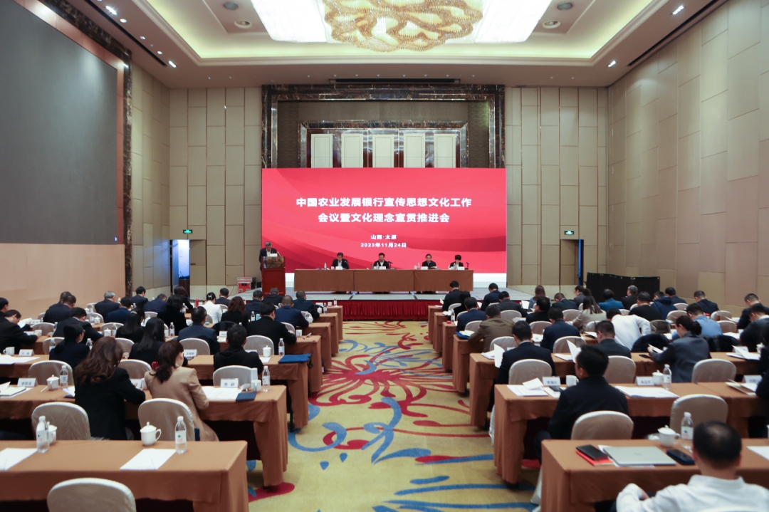 11月24日,農(nóng)發(fā)行在山西太原召開全行宣傳思想文化工作會議暨文化理念宣貫推進會,傳達學(xué)習(xí)習(xí)近平總書記關(guān)于宣傳思想文化工作的重要指示、全國宣傳思想文化工作會議和中央金融工作會議精神,部署貫徹落實措施??傂悬h委委員、副行長徐一丁出席會議并講話,黨委宣傳部主要負責(zé)人主持會議,各省級分行分管宣傳工作的行領(lǐng)導(dǎo)、總行有關(guān)部室負責(zé)人、控股子公司有關(guān)負責(zé)人和省級分行黨委宣傳部部長參加會議。