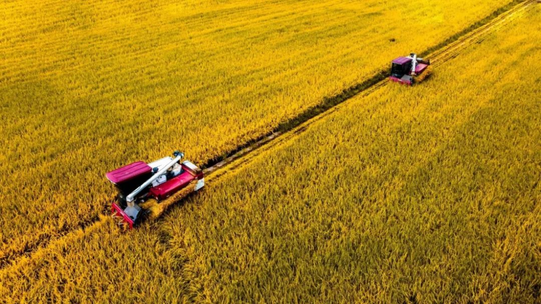 ▲中國農(nóng)業(yè)發(fā)展銀行四川省眉山市分行信貸支持高標準農(nóng)田新建和改造提升,圖為東坡區(qū)永豐村高標準農(nóng)田大規(guī)模收割場景