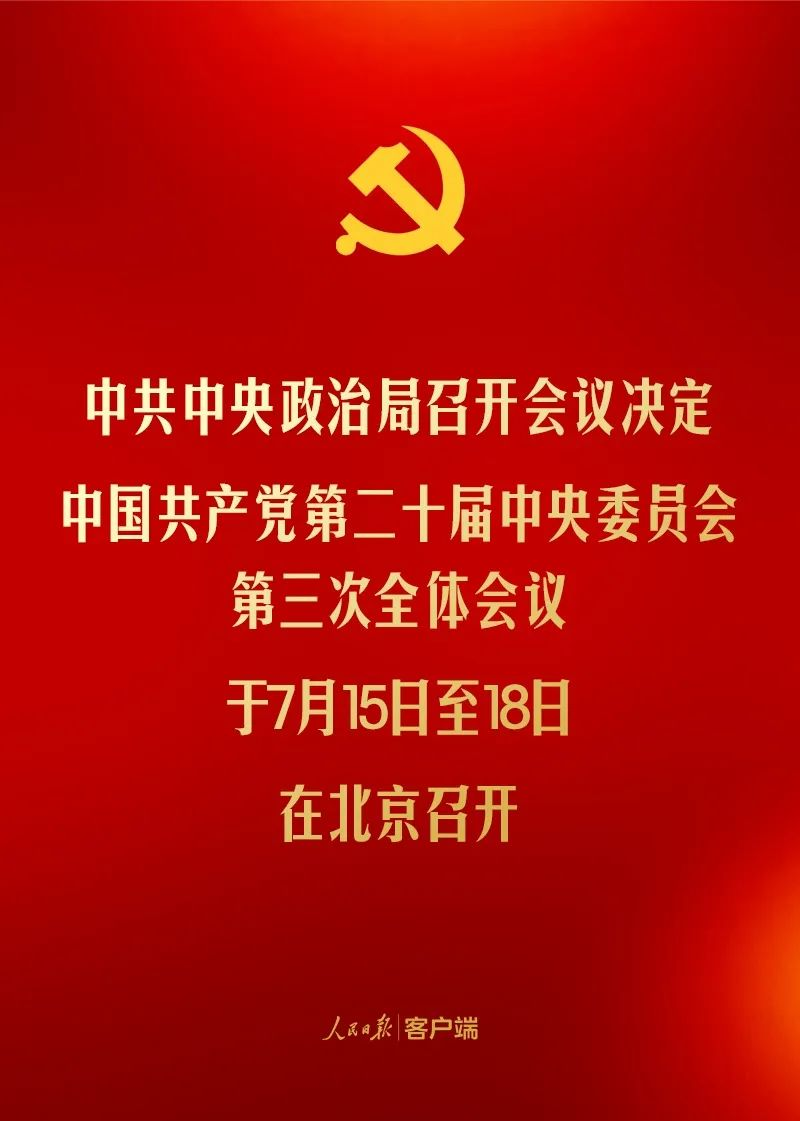 會議決定,中國共產(chǎn)黨第二十屆中央委員會第三次全體會議于7月15日至18日在北京召開。