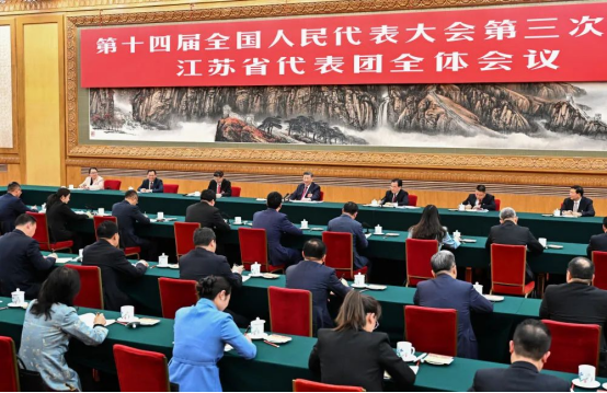 3月5日下午,中共中央總書記、國家主席、中央軍委主席習(xí)近平參加他所在的十四屆全國人大三次會議江蘇代表團(tuán)審議。新華社發(fā)(盛佳鵬 攝)