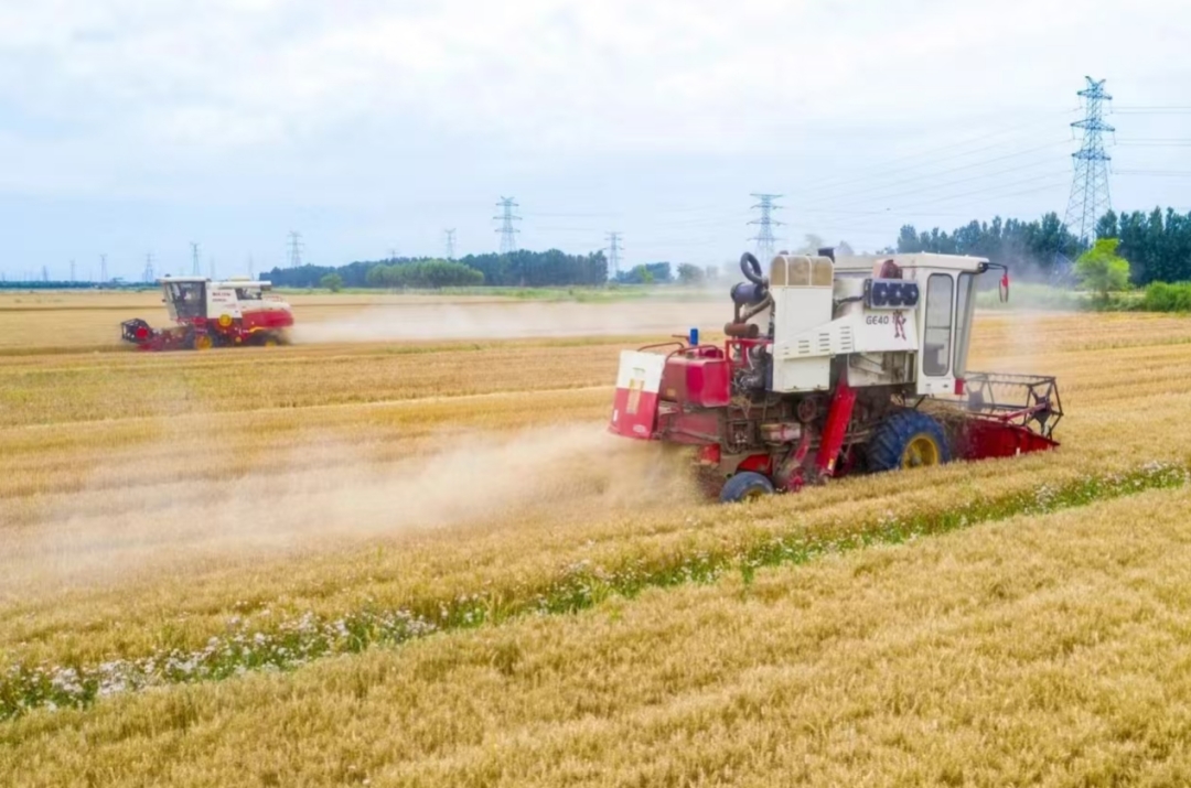 ▲黃三角農(nóng)高區(qū)鹽堿地試驗(yàn)基地麥?zhǔn)宅F(xiàn)場(chǎng)