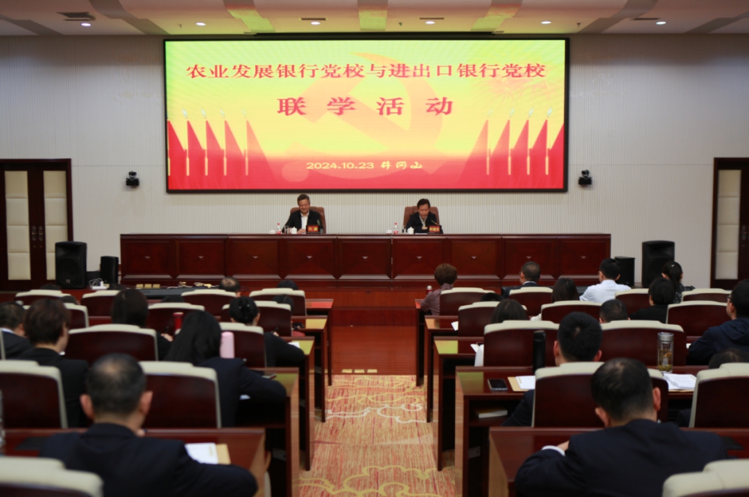 10月23日,中國(guó)農(nóng)業(yè)發(fā)展銀行黨校與中國(guó)進(jìn)出口銀行黨校舉行2024年秋季班學(xué)習(xí)貫徹黨的二十屆三中全會(huì)精神聯(lián)學(xué)共建活動(dòng),農(nóng)發(fā)行黨校副校長(zhǎng)、進(jìn)出口銀行黨校執(zhí)行副校長(zhǎng)出席活動(dòng)。來(lái)自農(nóng)發(fā)行井岡山黨校的90名學(xué)員和來(lái)自進(jìn)出口銀行的48名學(xué)員參加本次活動(dòng),開(kāi)展分組座談,并各自派出代表作會(huì)議交流。