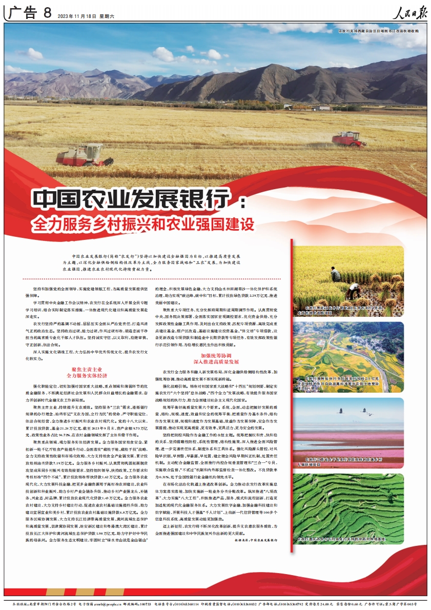 中國農(nóng)業(yè)發(fā)展銀行(簡稱“農(nóng)發(fā)行”)堅(jiān)持以加快建設(shè)金融強(qiáng)國為目標(biāo),以推進(jìn)高質(zhì)量發(fā)展為主題,以深化金融供給側(cè)結(jié)構(gòu)性改革為主線,全力服務(wù)國家戰(zhàn)略和“三農(nóng)”發(fā)展,為加快建設(shè)農(nóng)業(yè)強(qiáng)國、推進(jìn)農(nóng)業(yè)農(nóng)村現(xiàn)代化持續(xù)貢獻(xiàn)力量。