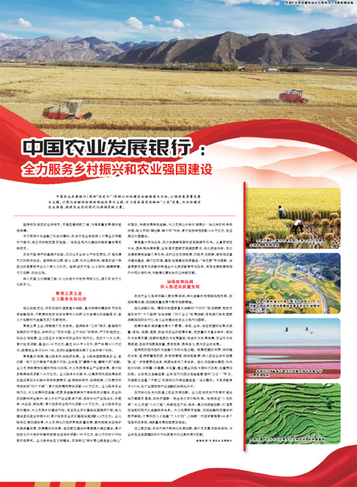 中國(guó)農(nóng)業(yè)發(fā)展銀行(簡(jiǎn)稱“農(nóng)發(fā)行”)堅(jiān)持以加快建設(shè)金融強(qiáng)國(guó)為目標(biāo),以推進(jìn)高質(zhì)量發(fā)展為主題,以深化金融供給側(cè)結(jié)構(gòu)性改革為主線,全力服務(wù)國(guó)家戰(zhàn)略和“三農(nóng)”發(fā)展,為加快建設(shè)農(nóng)業(yè)強(qiáng)國(guó)、推進(jìn)農(nóng)業(yè)農(nóng)村現(xiàn)代化持續(xù)貢獻(xiàn)力量。