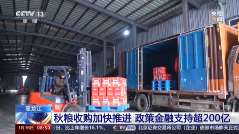 1月16日,中央電視臺新聞頻道《朝聞天下》欄目播出《黑龍江秋糧收購加快推進 政策金融支持超200億》消息。