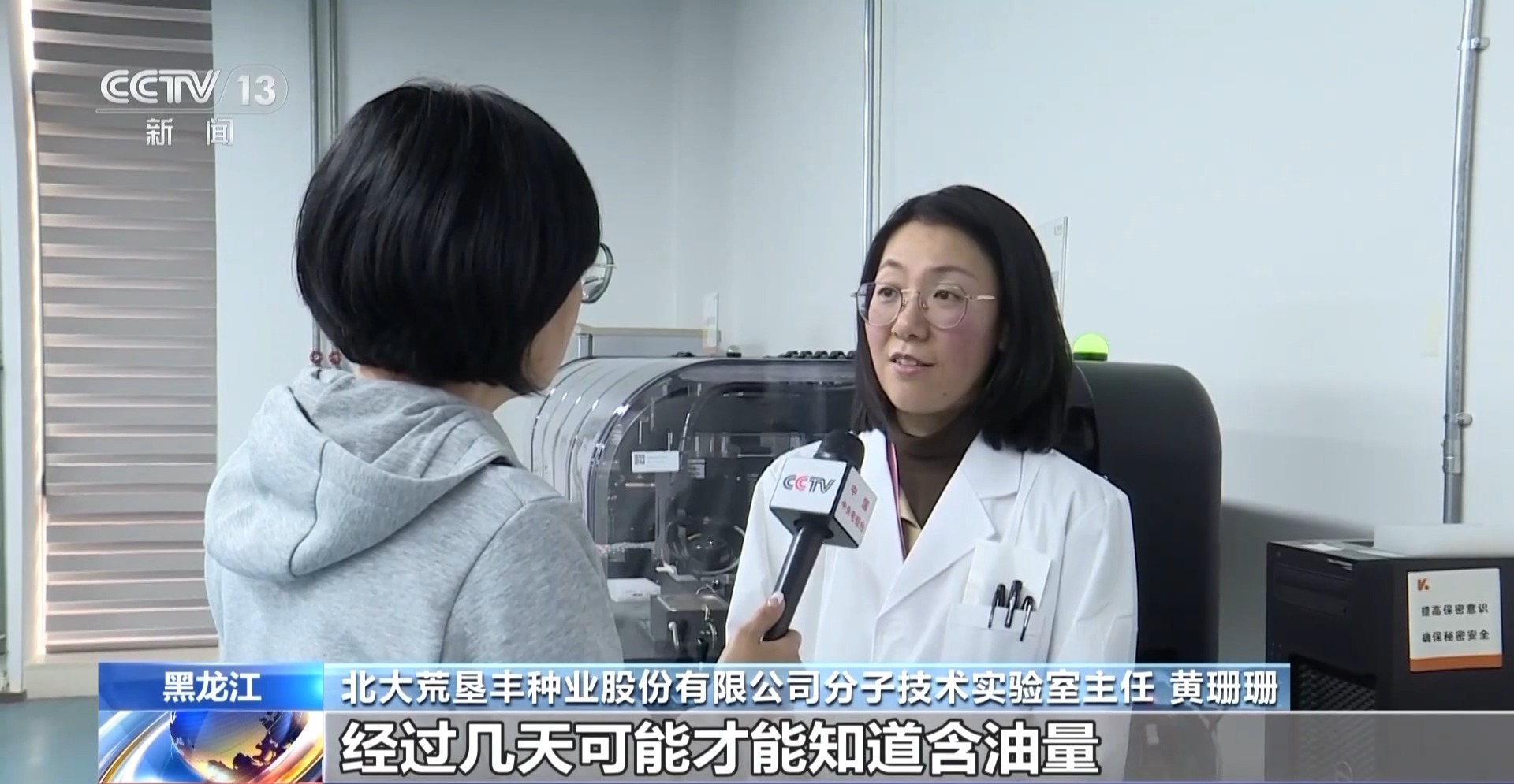 北大荒墾豐種業(yè)股份有限公司分子技術(shù)實(shí)驗(yàn)室主任 黃珊珊:以前常規(guī)育種,用眼看、用尺量,甚至用牙咬,經(jīng)過幾天可能才能知道含油量或者是蛋白含量。現(xiàn)在我們通過分子標(biāo)記,幾個(gè)小時(shí)就已經(jīng)知道了它的結(jié)果。