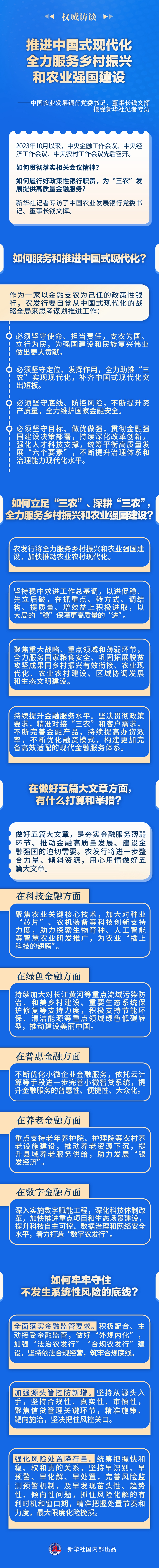 問:中央金融工作會議指出,金融要為經(jīng)濟社會發(fā)展提供高質量服務。請問農發(fā)行將如何立足“三農”、深耕“三農”,全力服務鄉(xiāng)村振興和農業(yè)強國建設?