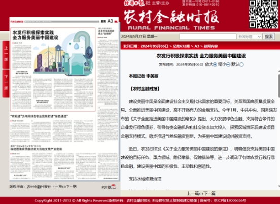 近日,農(nóng)發(fā)行印發(fā)《關于全力服務美麗中國建設的意見》,明確信貸支持美麗中國建設的目標任務、重點領域、路徑舉措、保障措施等,進一步調動了各地農(nóng)發(fā)行踐行綠色金融,建設美麗中國的積極性、主動性和創(chuàng)造性。