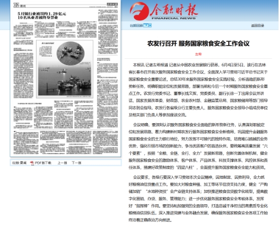 本報訊 記者左希報道 記者從中國農(nóng)業(yè)發(fā)展銀行獲悉,6月4日至5日,該行在吉林省長春市召開首次服務(wù)國家糧食安全工作會議,全面深入學(xué)習(xí)貫徹習(xí)近平總書記關(guān)于國家糧食安全重要論述,總結(jié)30年來服務(wù)國家糧食安全實踐經(jīng)驗,分析面臨的新形勢新任務(wù),明確職能定位和發(fā)展思路,部署當(dāng)前和今后一個時期服務(wù)國家糧食安全重點工作。農(nóng)發(fā)行黨委書記、董事長錢文揮,黨委委員、副行長徐一丁出席會議并講話,國家發(fā)展改革委、財政部、農(nóng)業(yè)農(nóng)村部、金融監(jiān)管總局、國家糧儲局等部門領(lǐng)導(dǎo)同志到會指導(dǎo)。農(nóng)發(fā)行各省級分行主要負(fù)責(zé)人、服務(wù)國家糧食安全領(lǐng)導(dǎo)小組成員單位及相關(guān)部門負(fù)責(zé)人等參加座談交流。