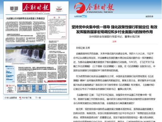 作為政策性銀行和農(nóng)業(yè)金融服務(wù)主力軍,中國(guó)農(nóng)業(yè)發(fā)展銀行如何貫徹落實(shí)《論述摘編》精神?如何強(qiáng)化政策性金融機(jī)構(gòu)職能定位,聚焦主責(zé)主業(yè),更好服務(wù)鄉(xiāng)村全面振興和農(nóng)業(yè)強(qiáng)國(guó)建設(shè)?就農(nóng)發(fā)行學(xué)習(xí)宣傳貫徹《論述摘編》有關(guān)情況,《金融時(shí)報(bào)》記者近日專訪了中國(guó)農(nóng)業(yè)發(fā)展銀行黨委書(shū)記、董事長(zhǎng)錢(qián)文揮。