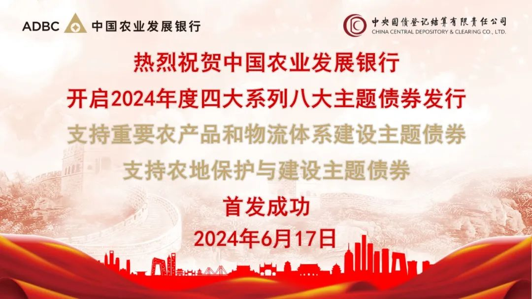 6月17日,中國農(nóng)業(yè)發(fā)展銀行在中央結(jié)算公司通過公開招標(biāo)方式,面向全球投資者成功發(fā)行3年期支持重要農(nóng)產(chǎn)品和物流體系建設(shè)主題債券50億元、5年期支持農(nóng)地保護(hù)與建設(shè)主題債券50億元,發(fā)行利率分別為1.9255%、2.0661%,認(rèn)購倍率分別為4.24倍、5.61倍,得到了郵儲(chǔ)銀行、招商銀行、中國銀行、江蘇銀行、青島農(nóng)商行等機(jī)構(gòu)的大力支持。