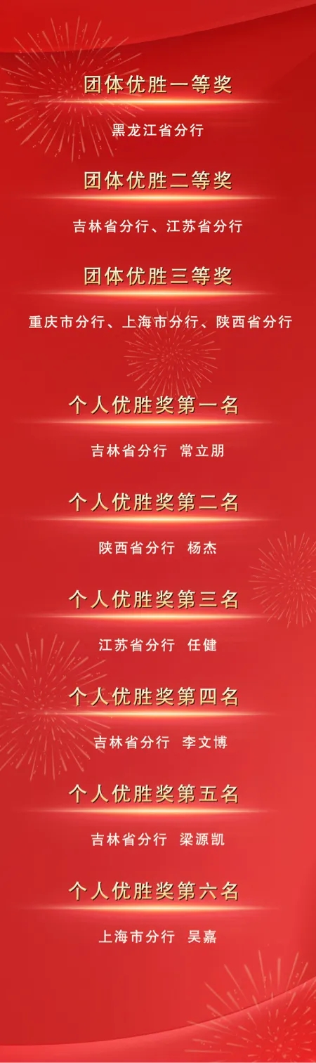 本次競賽是農(nóng)發(fā)行首次舉辦科技類技能競賽,技術(shù)專業(yè)性強、覆蓋面廣,參加此次競賽的是農(nóng)發(fā)行科技領(lǐng)域的業(yè)務(wù)能手,是農(nóng)發(fā)行廣大職工銳意進取、創(chuàng)先爭優(yōu)的縮影,是農(nóng)發(fā)行勞模精神、工匠精神的生動體現(xiàn)。賽事的成功舉辦彰顯了農(nóng)發(fā)行網(wǎng)絡(luò)安全體系建設(shè)成效,展示了信息科技工作取得的長足進步??傂泄⒁源舜胃傎悶槠鯔C,持續(xù)擦亮“金農(nóng)發(fā)行杯”勞動競賽品牌,不斷為農(nóng)發(fā)行高質(zhì)量發(fā)展和現(xiàn)代化建設(shè)注入新的活力。