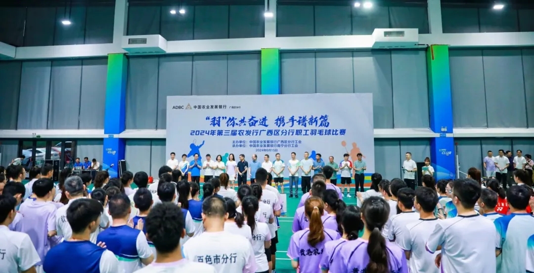 為慶祝中華人民共和國成立75周年和農(nóng)發(fā)行建行30周年,進(jìn)一步激發(fā)廣大職工團(tuán)結(jié)協(xié)助、堅韌不拔的奮斗精神,6月15日,廣西區(qū)分行舉辦“‘羽’你共奮進(jìn) 攜手譜新篇”第三屆職工羽毛球比賽。來自區(qū)分行機(jī)關(guān)及各二級分行的15支參賽代表隊共150余人齊聚首府南寧,同臺競技,共襄盛舉。區(qū)分行黨委委員、紀(jì)委書記俞莉出席活動。