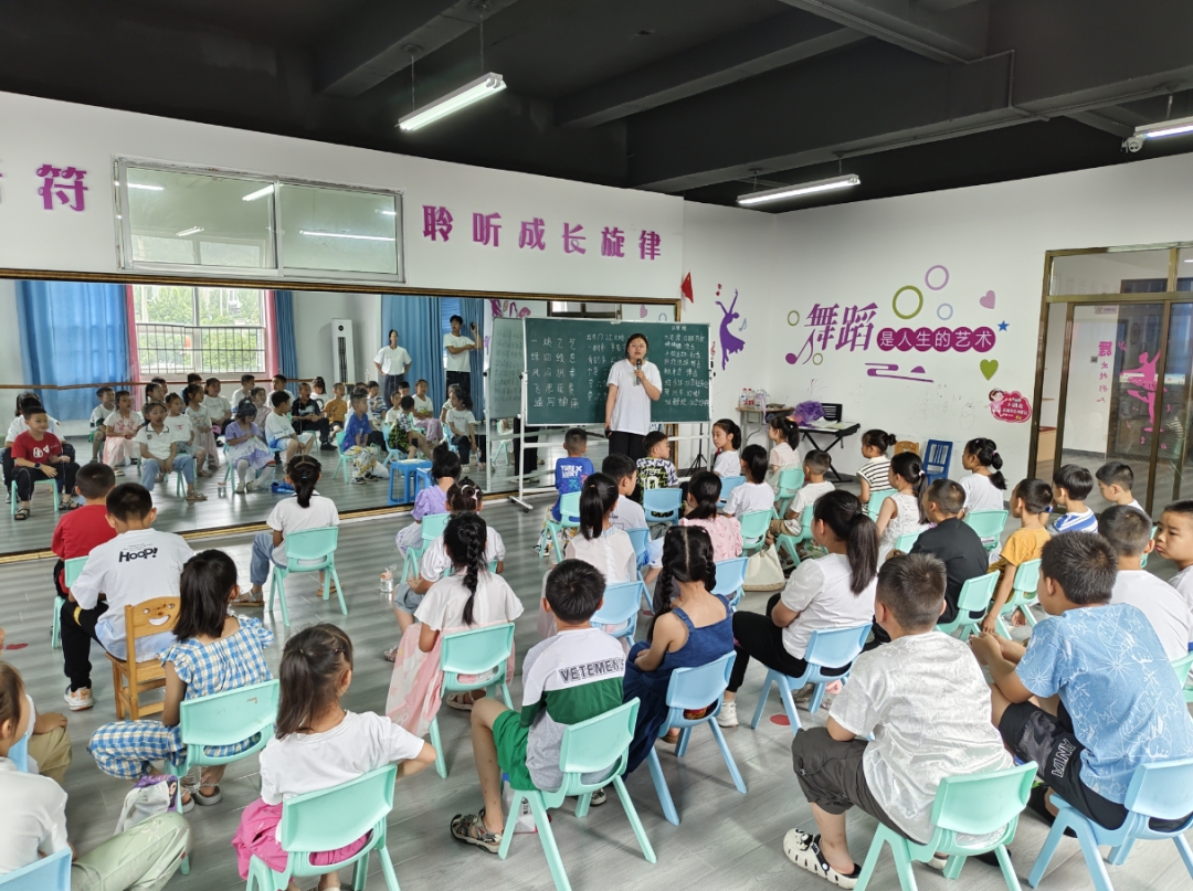 ▲陜西科技大學與農發(fā)行陜西分行青年志愿者在當?shù)貎和议_展暑期教學活動