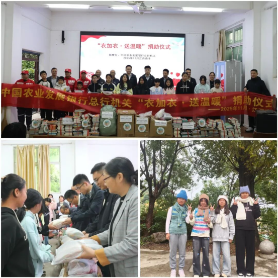 10月底,馬關(guān)縣定點幫扶三人小組聯(lián)合馬關(guān)縣支行、省分行掛鉤幫扶馬鞍山社區(qū)舉辦了捐贈儀式,將募集到的冬季衣物捐贈給當?shù)厝罕?,送去溫暖與關(guān)懷。11月4日,總行機關(guān)團委書記前往江西南豐,與當?shù)剞r(nóng)發(fā)行掛職干部赴三溪鄉(xiāng)中心學(xué)校舉辦捐贈儀式,將募集到的書籍和公益編織作品送到孩子們的手中,用跨越萬水千山的心意助力孩子們的健康成長。