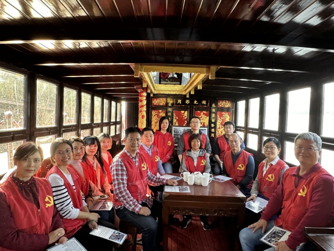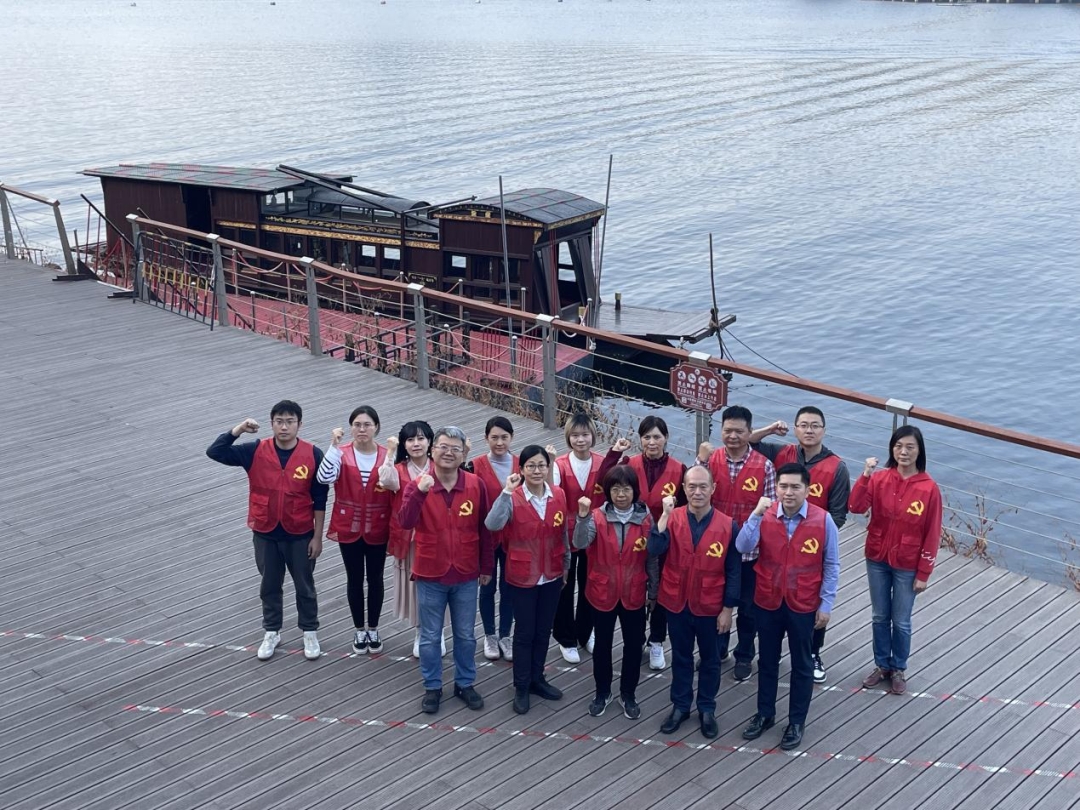 在紅船廣場,同志們走進了中共一大模擬會址——嘉興紅船,切身體驗百年前這一驚天動地的大事件。中共一大的召開標志著中國共產(chǎn)黨的正式成立,猶如一輪紅日在東方冉冉升起,照亮了中國革命的光輝前程。在紅船上,大家現(xiàn)場演繹了當年會議的系列片段,齊唱國際歌,感悟先輩們堅定不移的共產(chǎn)主義信仰與救國救民的熱血情懷,激發(fā)了為中國特色社會主義事業(yè)奮斗的信念和力量。